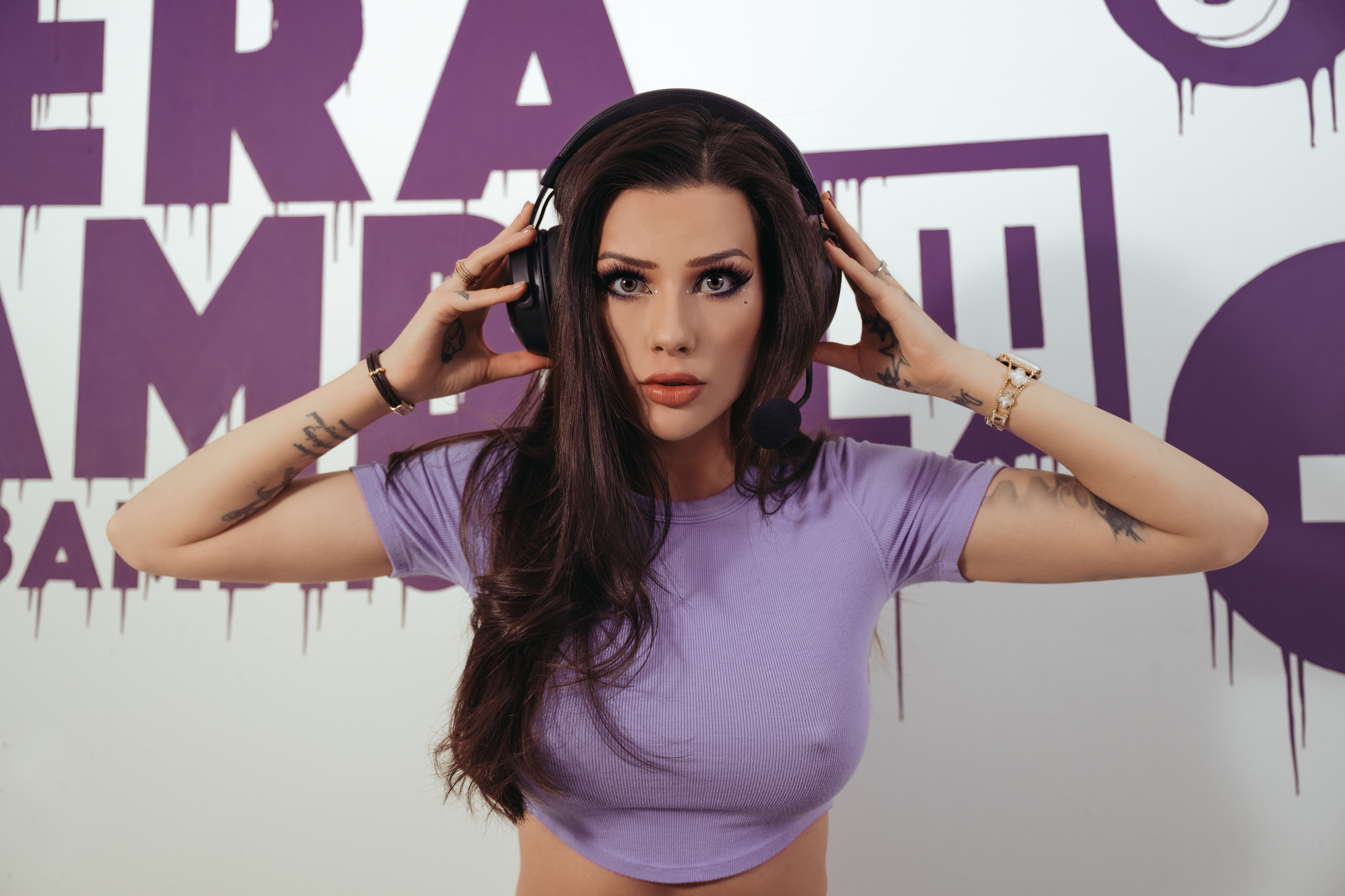 Vera had spent a significant amount of time developing her Twitch Studio into a space she was happy with aesthetically. To keep the branding cohesive, we choose to capture these images within that space. Making use of the large design she had painted on the wall which would be in the background of her streams.